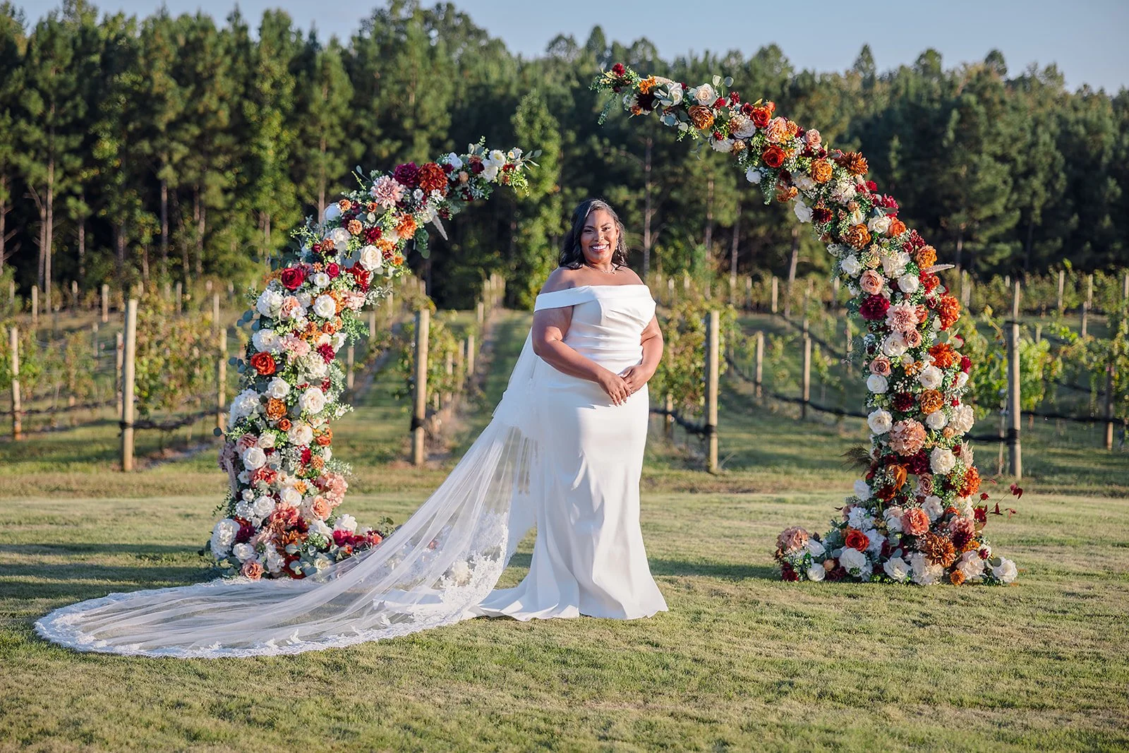 Our Autumn Arch blends warm seasonal hues with full, layered silk florals for an effortlessly elegant look. Perfect for outdoor events/ceremonies, barns, vineyards, and indoor venues. This arch adds depth, warmth, and timeless fall charm to any event!